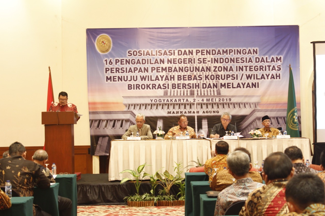 Sebagai tindak lanjut capaian di atas Biro Perencanaan dan Organisasi Mahkamah Agung menyelenggarakan acara Sosialisasi dan Pendampingan 16 Pengadilan Negeri Se-Indonesia dalam Persiapan Pembangunan Zona Integritas Menuju Wilayah Bebas Korupsi (WBK) / Wilayah Birokrasi Bersih dan Melayani (WBBM) di Yogyakarta pada 2-4 Mei 2019. Didik Purwanto Kepala Bagian Bimbingan dan Monitoring sebagai perwakilan dari Kepala Biro Perencanaan MA melaporkan bahwa acara ini diikuti oleh 99 peserta yang terdiri atas Ketua Pengadilan Tingkat Banding dan Pertama, Hakim Tinggi , Tim ZI, Sekretaris Pengadilan tingkat Banding dan Pertama. Dalam laporannya, Didik juga mengatakan bahwa tujuan acara ini adalah untuk memberikan sosialisasi dalam rangka persiapan pembangunan zona integritas di lingkungan Mahkamah Agung dan badan peradilan di bawahnya.